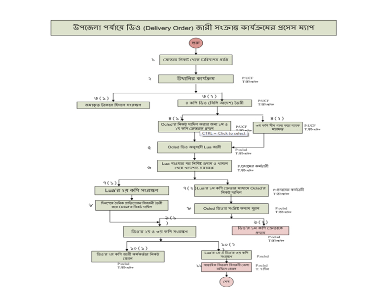 উপজেলা পর্যায়ে ডিও জারী সংক্রান্ত প্রসেস ম্যাপ