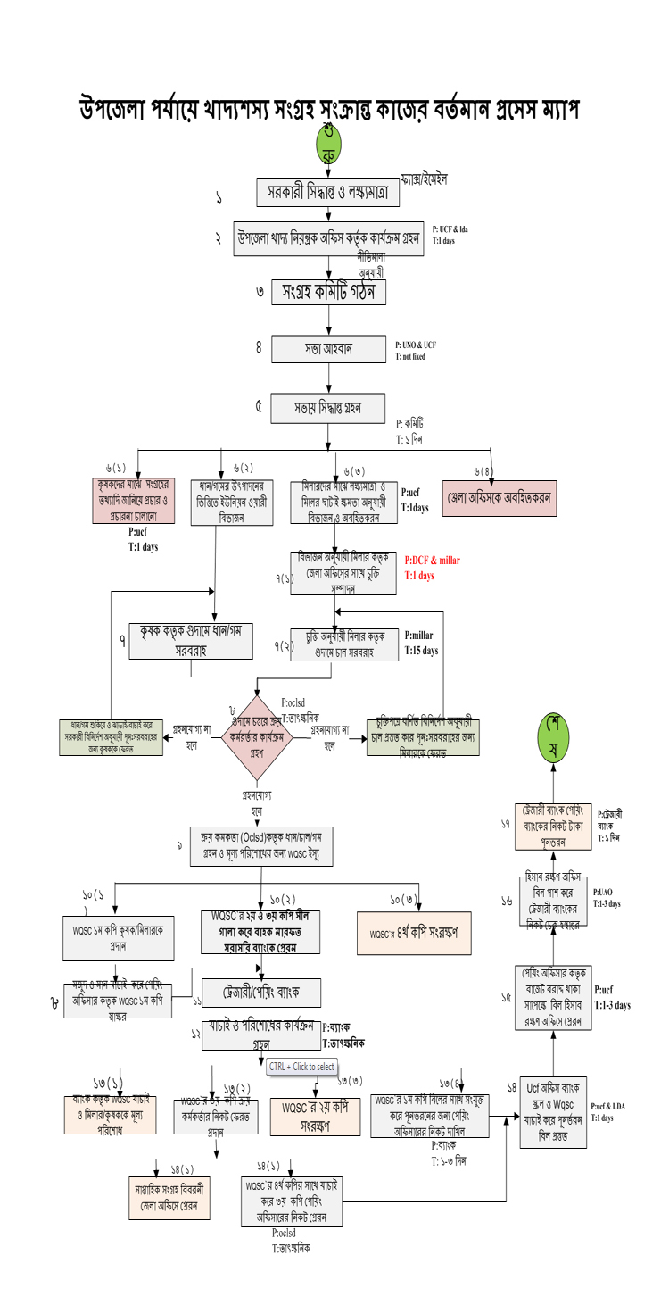 উপজেলা পর্যায়ে খাদ্য শষ্য সংক্রান্ত কাজের বর্তমান প্রসেস ম্যাপ